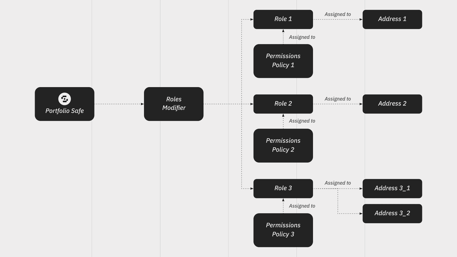 Roles Modifier allows users to configure and assign granular permissions to other accounts to act on their behalf. It allows different policies to be assigned to specific roles (e.g. the “Treasury Manager” role). Any number of addresses can be mapped to a given role, and any number of roles can be made and operated in tandem. This provides a complete and flexible primitive that can be used for all kinds of situations involving account management.